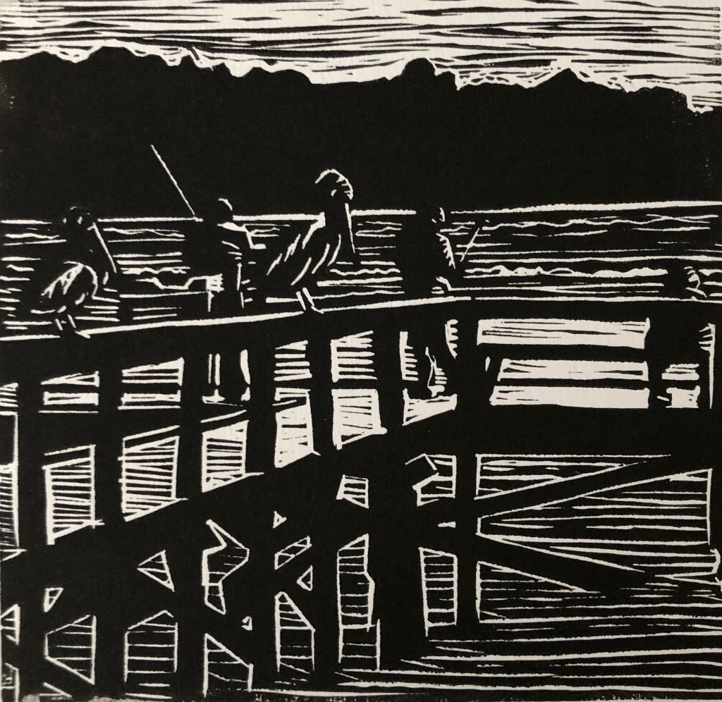 This relief print has been a popular seller: The Fishing Pier, George’s Bay, St Helens.